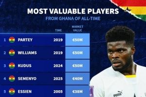 加纳球员德转历史最高身价排名: